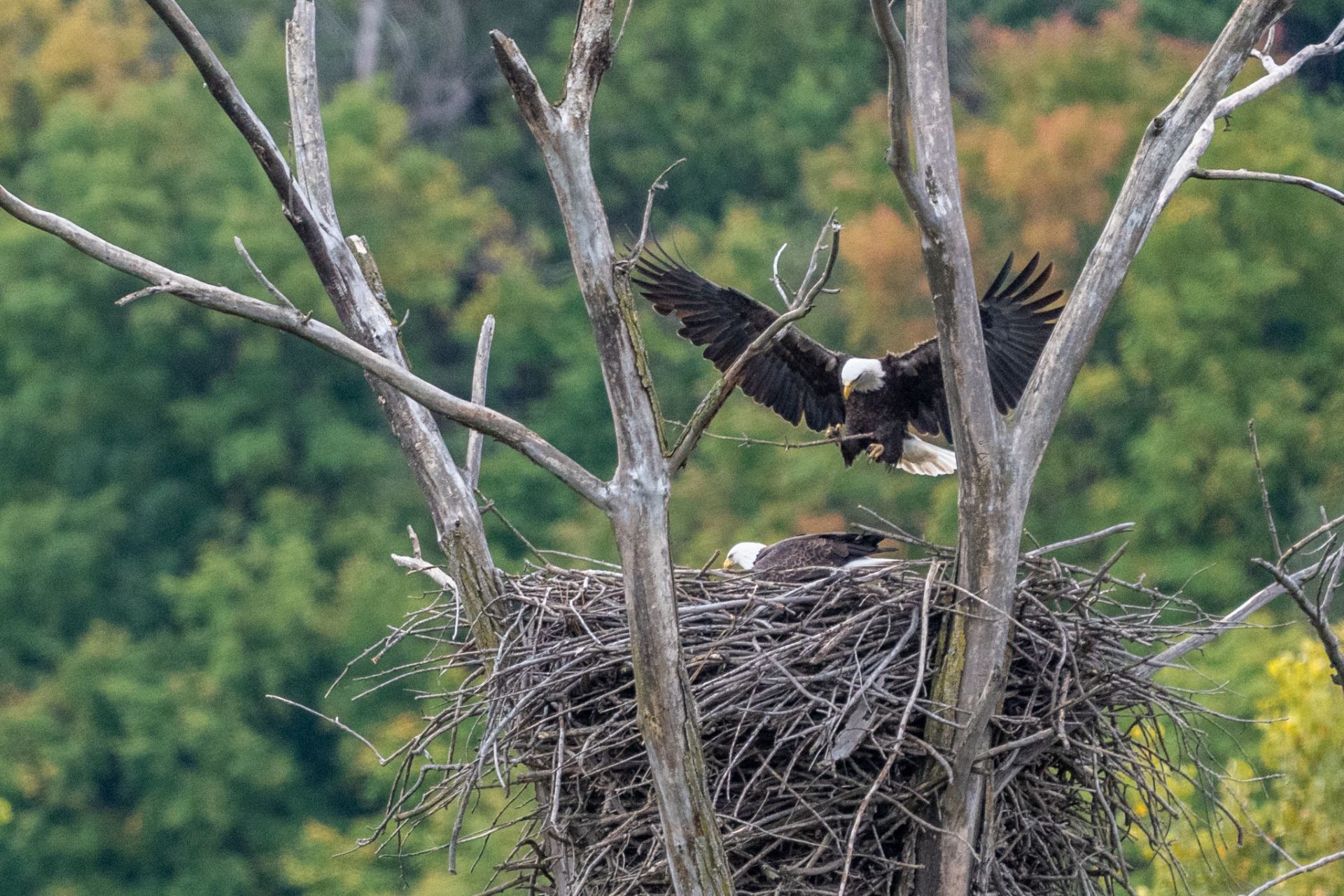 During high winds, we saw migrating cormorants and pelicans as they flew past He Mni Can/Barn Bluff in Red Wing. Eagles were flying and Turkey Vultures were having trouble in the winds. Vultures are not as strong as eagles, so they look ‘tippy’ when trying to navigate gusty winds. We also saw three Peregrine Falcons as they cruised around in the winds and they had no problem. Yesterday, we saw an eagle pair working on their nest. One eagle flew over to a tree, snapped off a branch, and brought it to the nest.