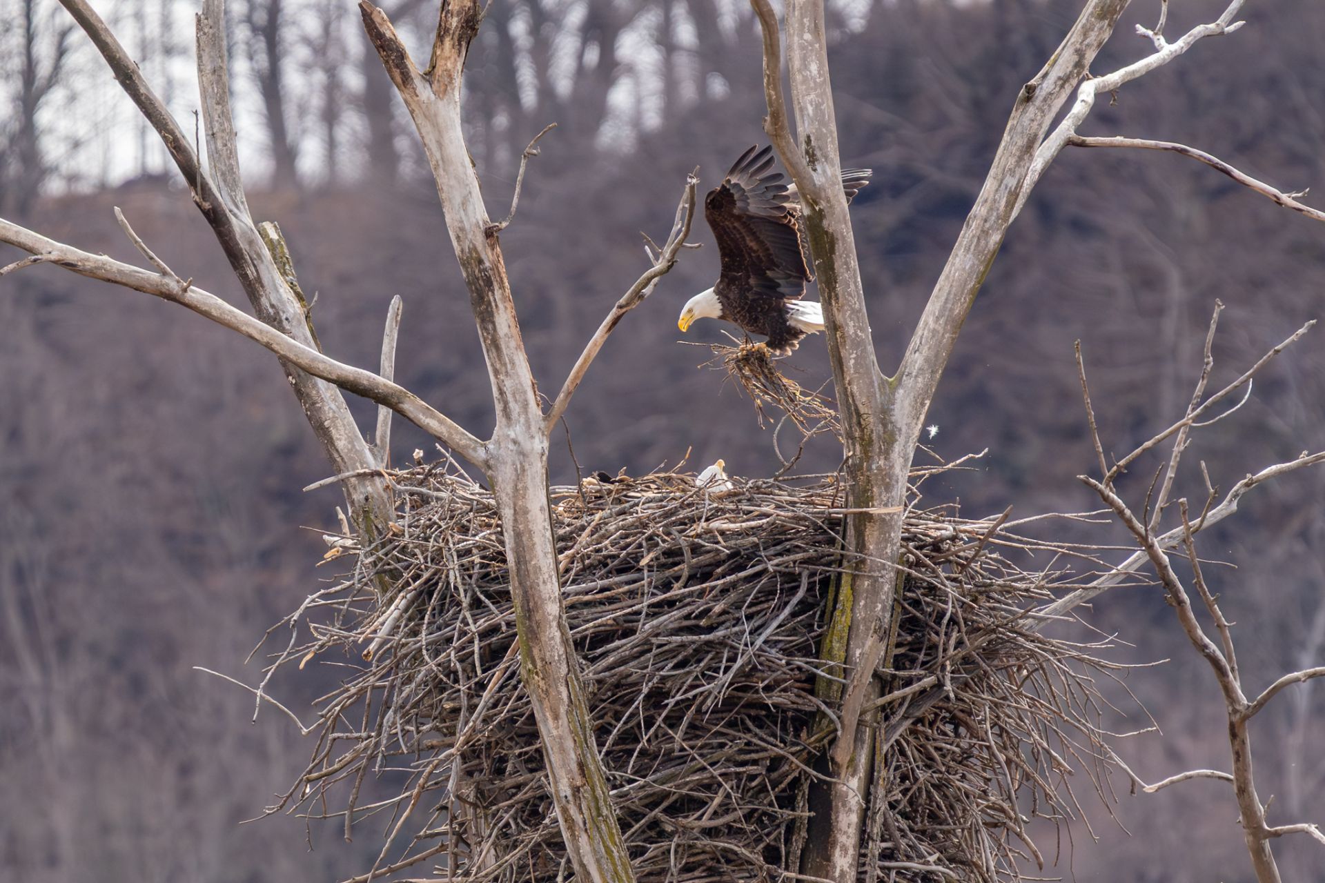 We watch about ten eagle nests in and around Red Wing, and most still are actively occupied. With this, we hope the eggs are incubating well and could hatch soon, even after the cold temperatures along with wind and rain. Turkey Vultures have returned, so we have to look twice when we see a dark bird soaring over a bluff to see if it is an eagle or not. The Great Blue Heron rookery at Bay Point Park is really active, with herons gathering sticks to enhance their nests. It seems some herons are laying eggs. We will lose sight of the nests in the next few weeks as the trees leaf out.